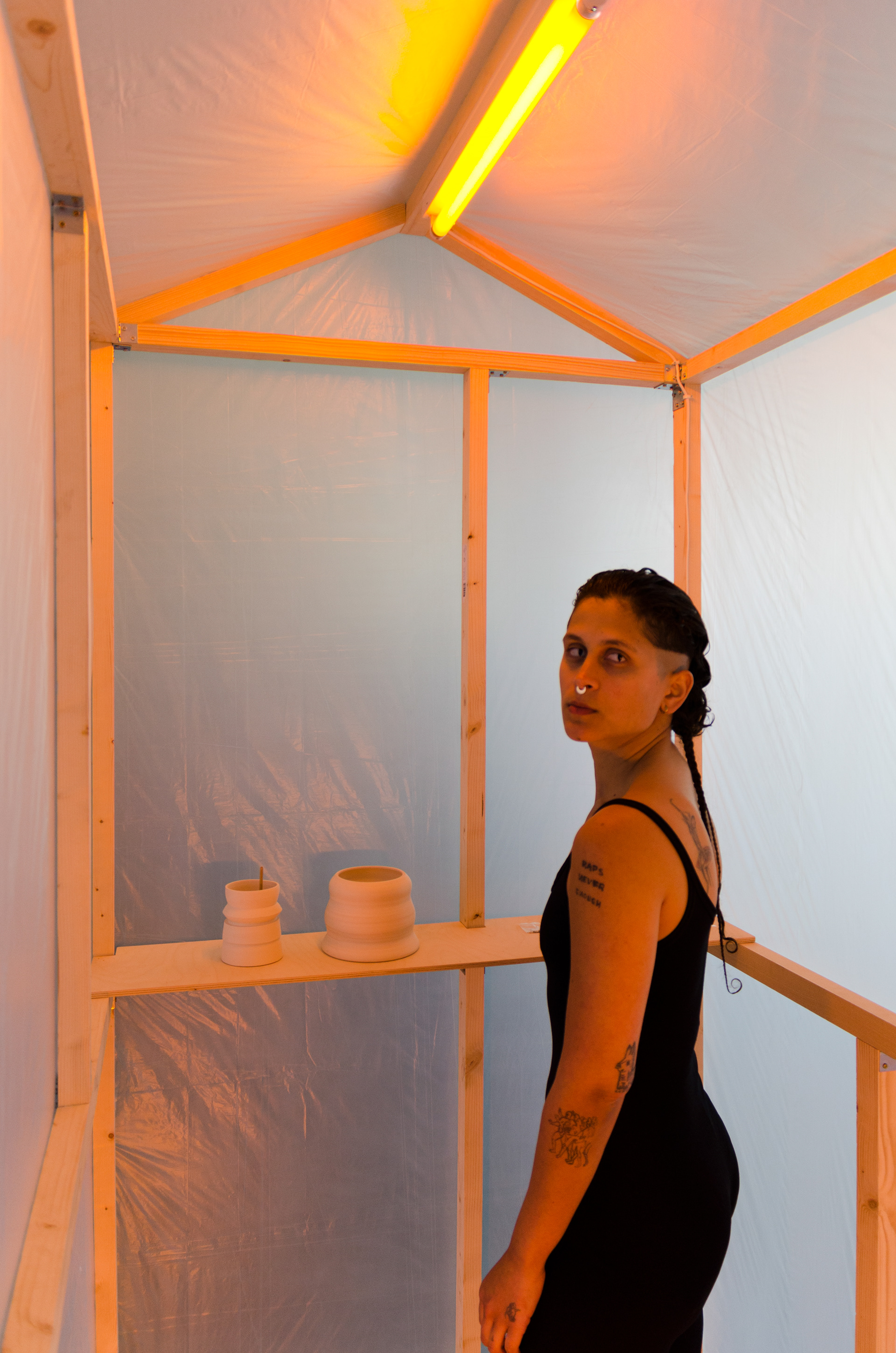 Domesticated lover is a performative installation starring storytelling and ecology. A performance of personal stories related to gender identity and its friction within society. As the performer gives a different anecdote to the viewers who are invited one by one into the ‘green house’, a bag of seeds is prepared and offered to them. It is their choice to do as they wish with the stories told and the seeds given. The work explores the idea of what is seen a ‘natural’ in a world with set norms, a world where not everyone feels they belong to in relation to the binary standards of self-representation and how others navigate this spaces.