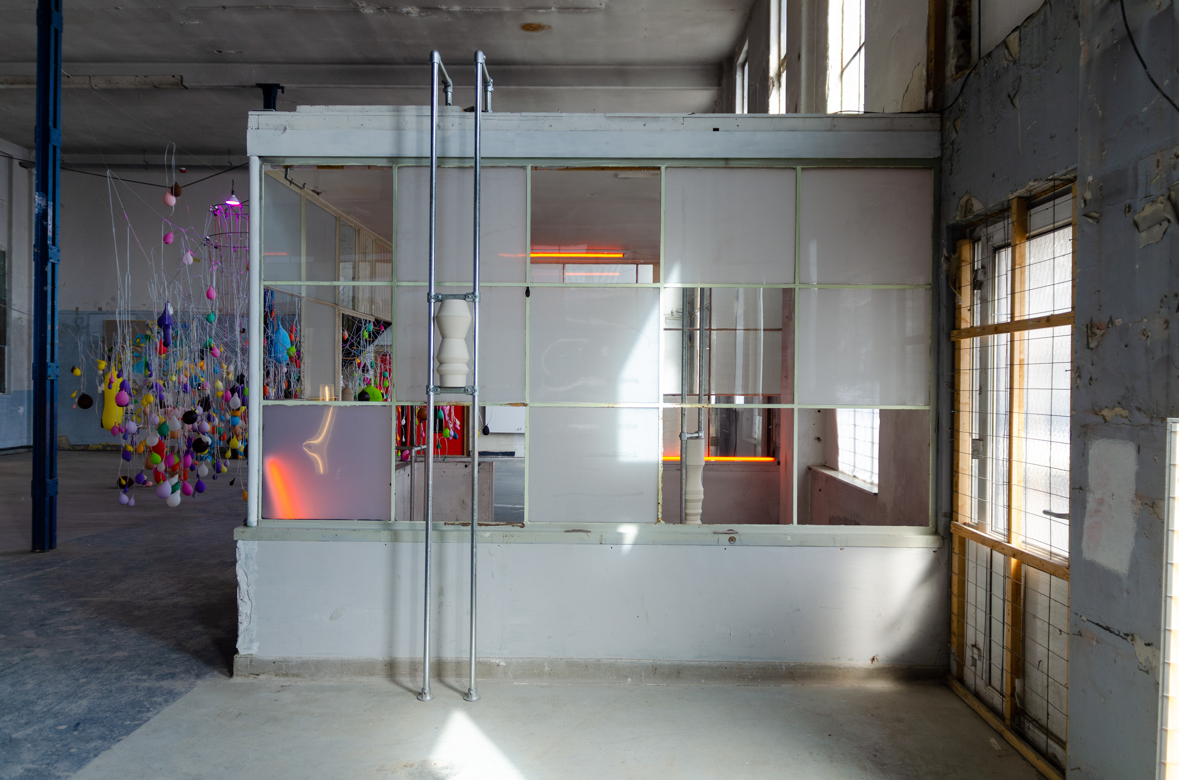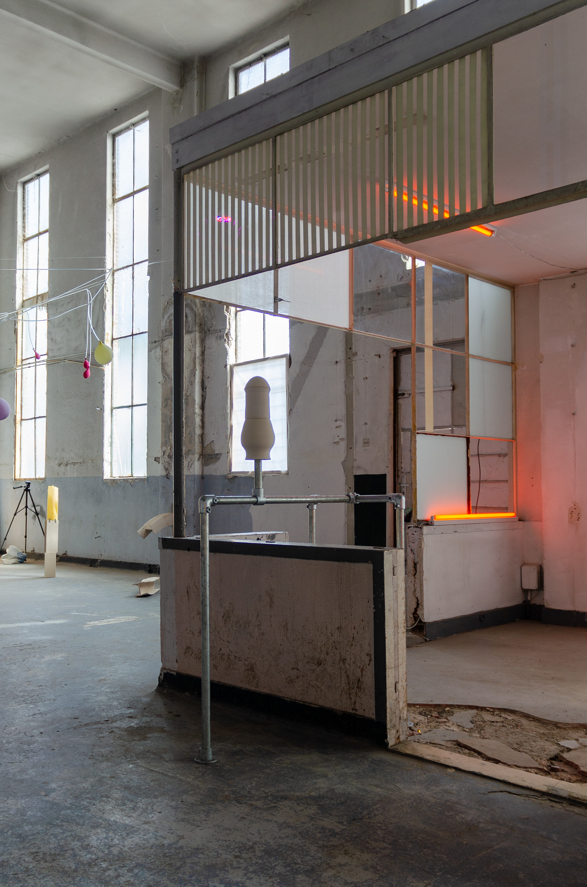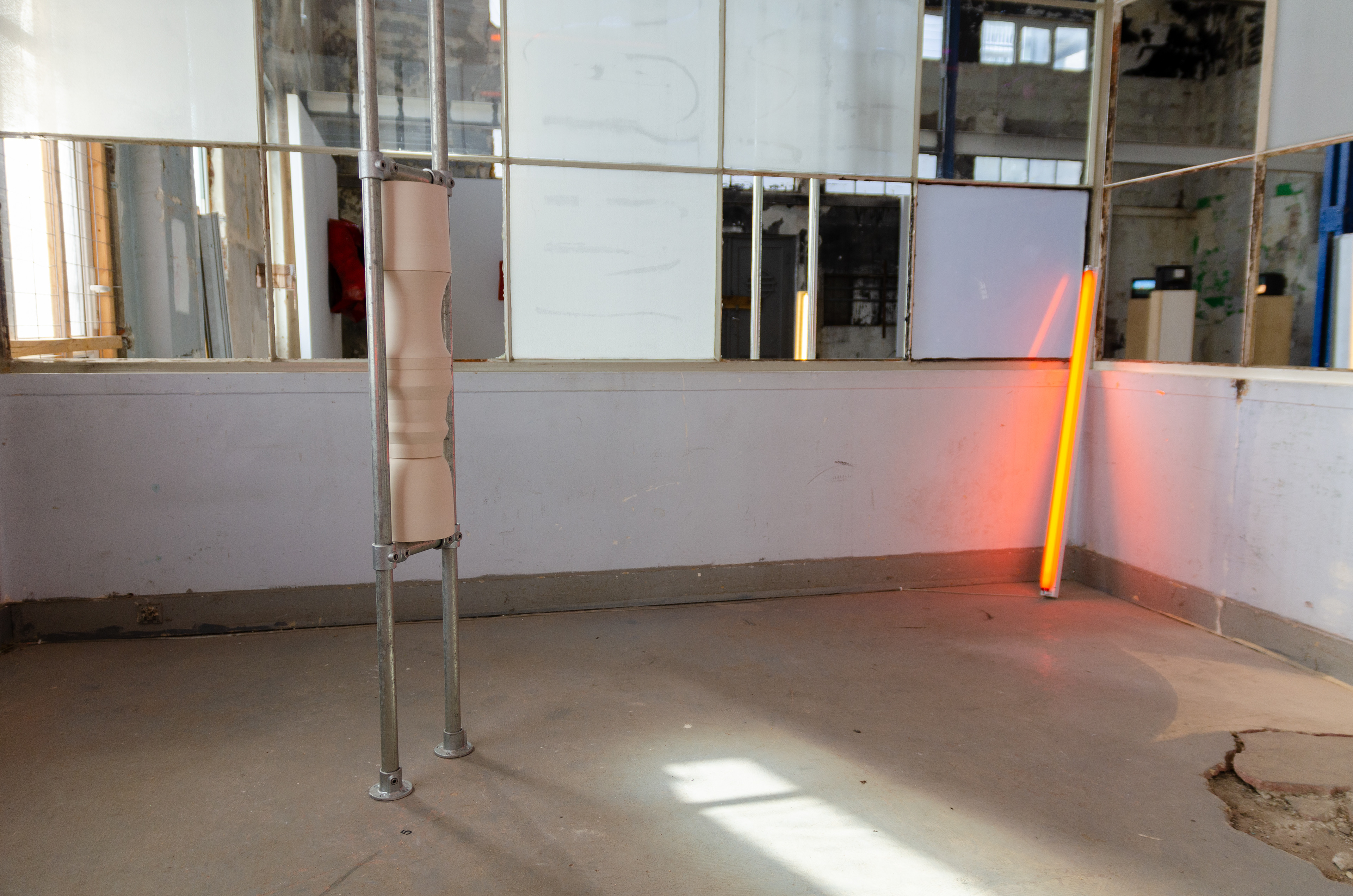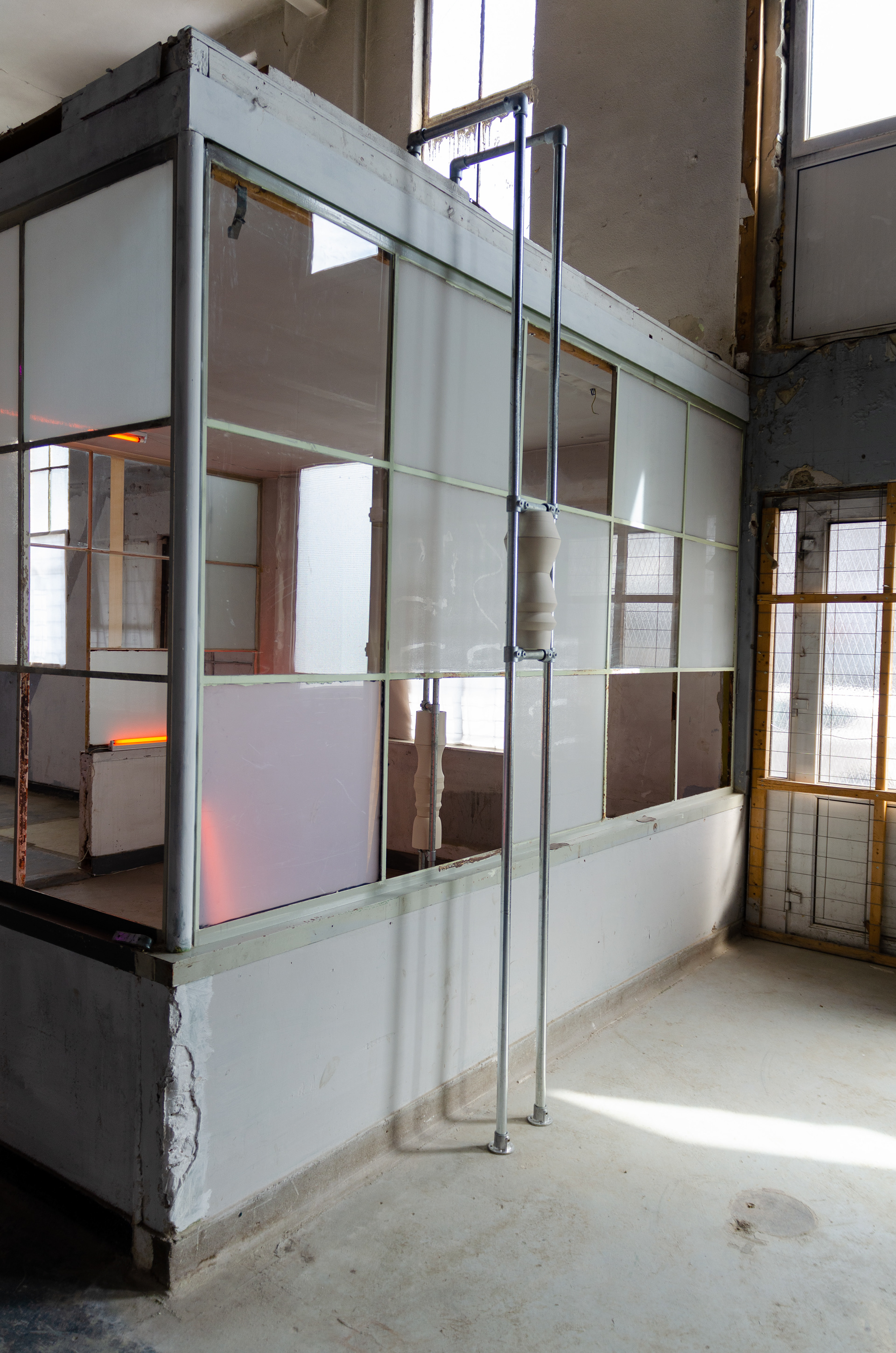 Ceramics, scaffolding tubes, colored light