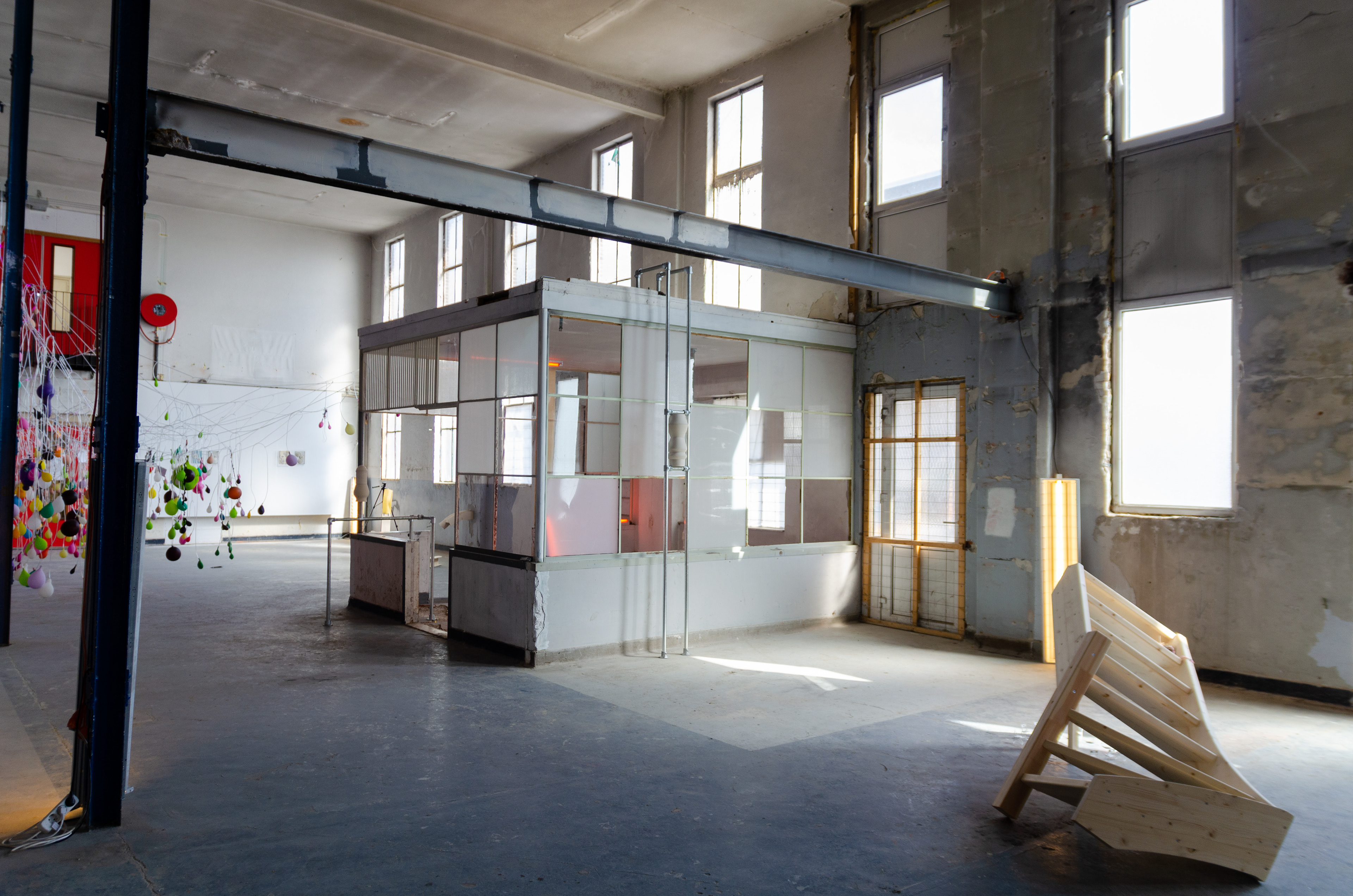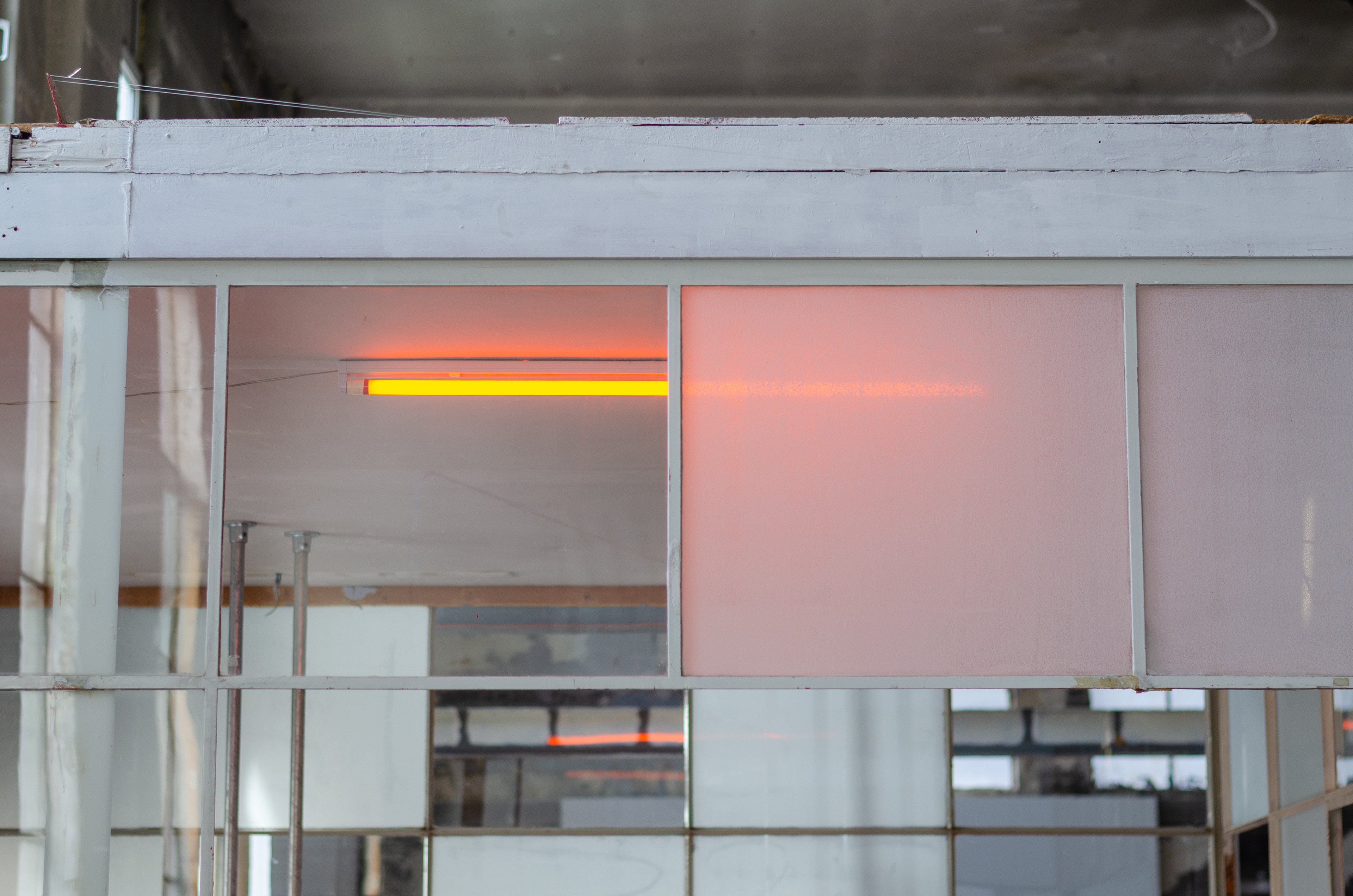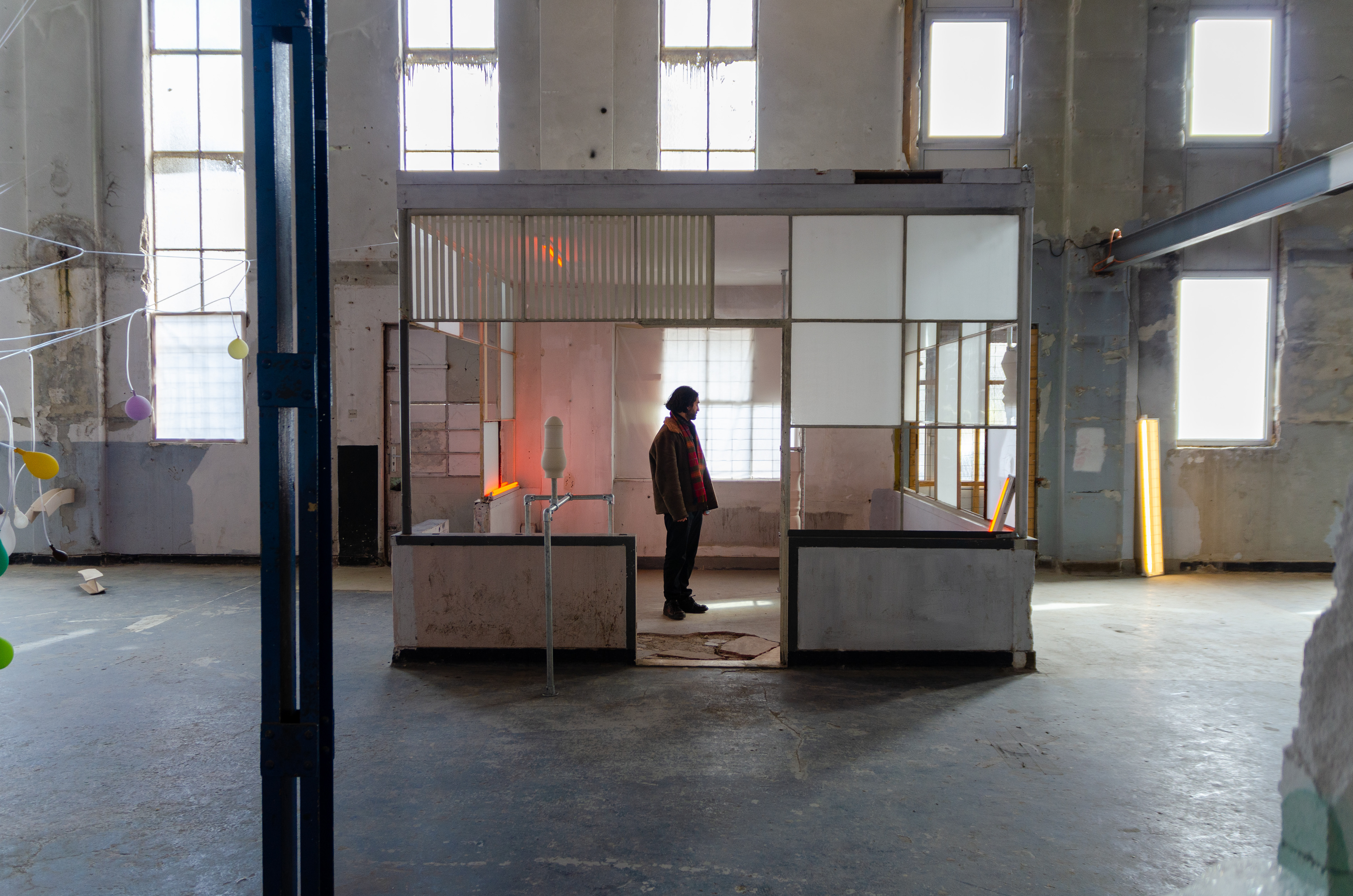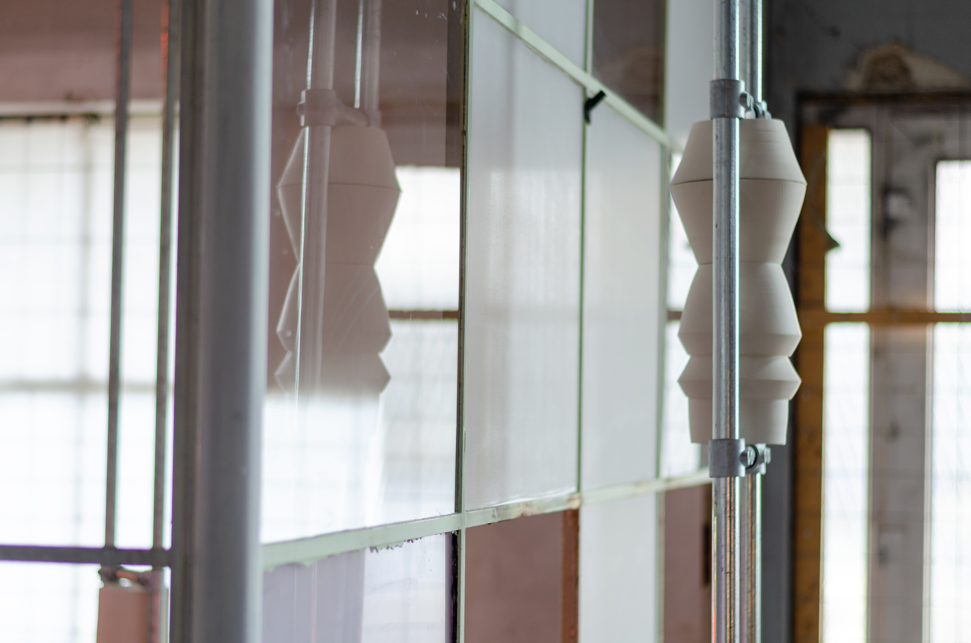 Ceramics, scaffolding tubes, colored light